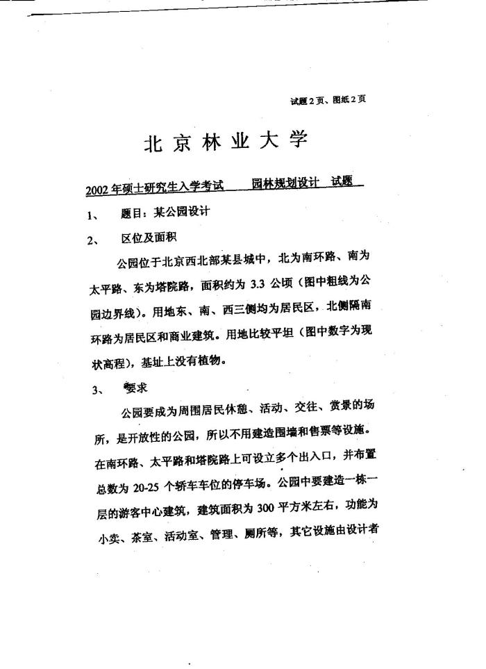 北京林业大学风景园林硕士考研真题系列-园林规划设计真题(5)