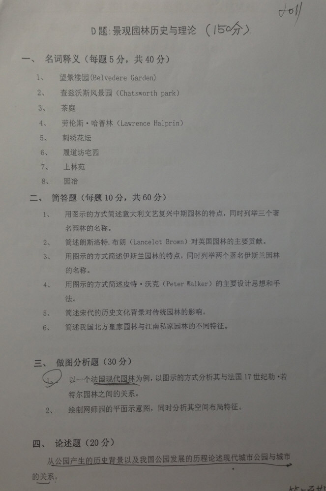 风景园林专业硕士11年综合理论真题