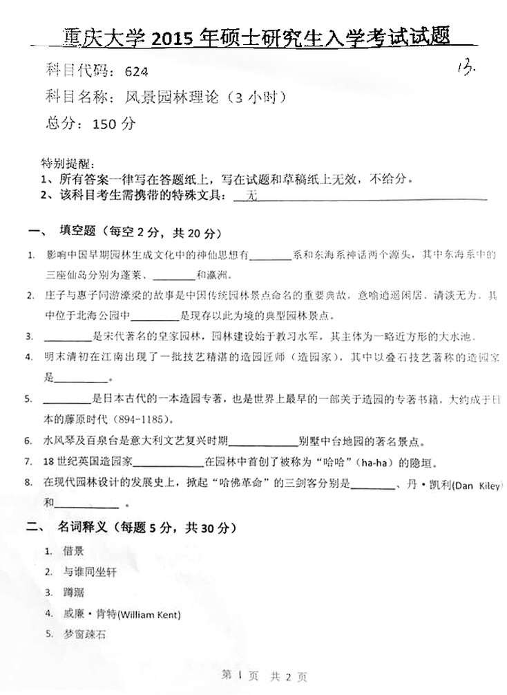 2010-2015年重庆大学风景园林理论考研真题(11)
