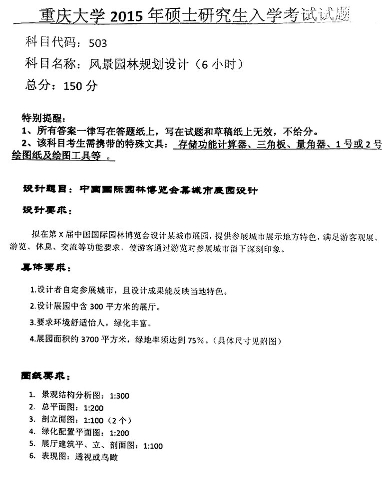 2010-2015年重庆大学风景园林理论考研真题(12)