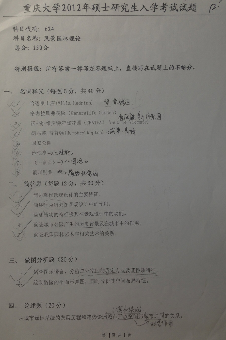 2010-2015年重庆大学风景园林理论考研真题(2)