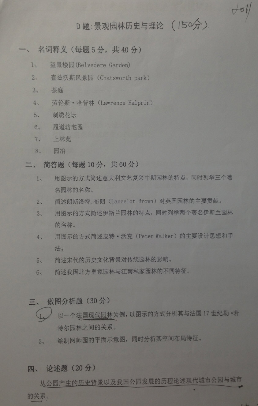 2010-2015年重庆大学风景园林理论考研真题(3)