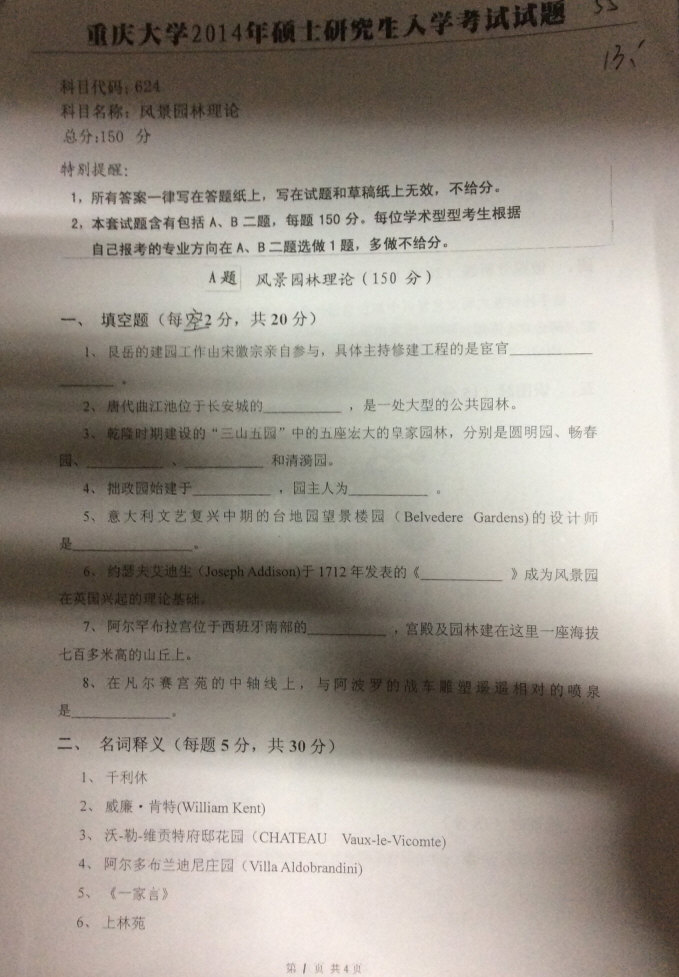 2010-2015年重庆大学风景园林理论考研真题(5)