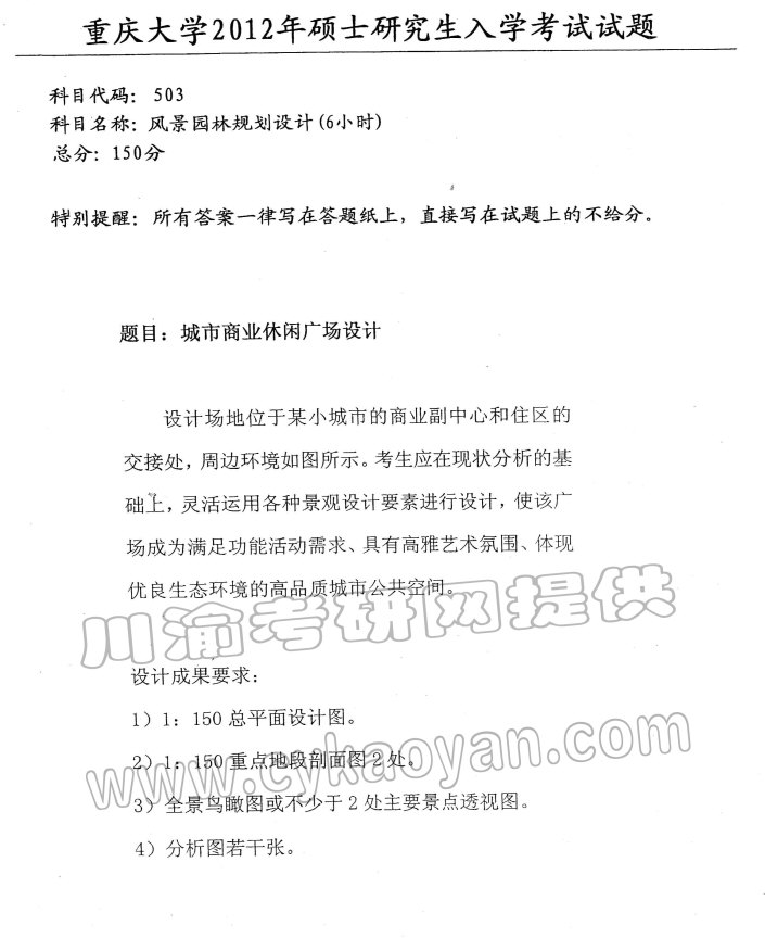2010-2014年重庆大学风景园林快题考研真题(25)