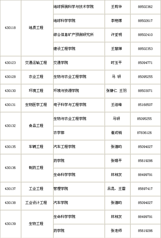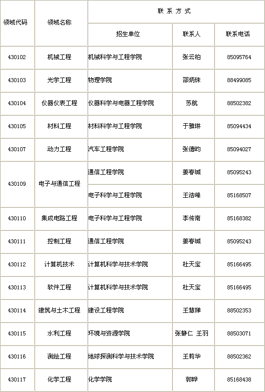 八、吉林大学招收工程硕士专业领域及联系人一览表(见下)。