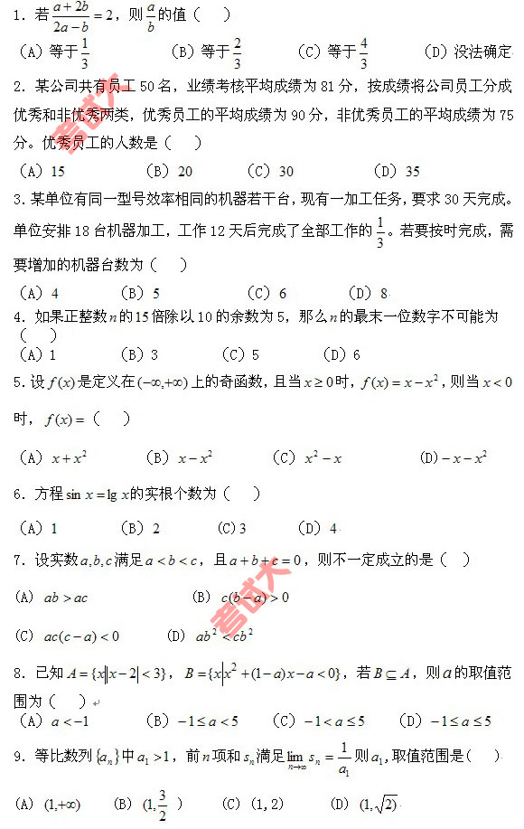 2008年在职GCT数学模拟附答案(第四期)