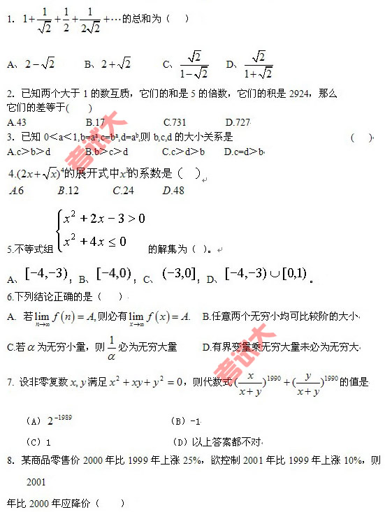 2008年在职GCT数学模拟附答案(第二期)