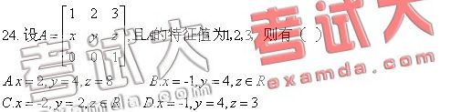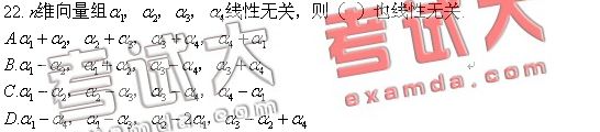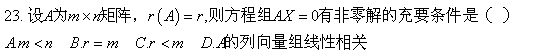 C.A的任意两行元素之间不成比例 D.以A为系数行列式的线性方程组有唯一解