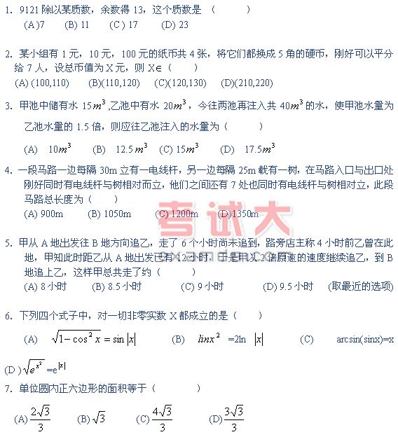 工硕模拟题:工硕数学模拟题(三)