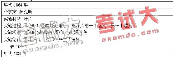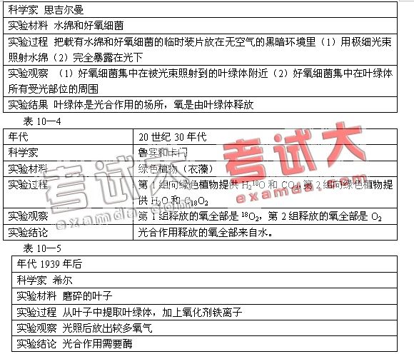 1.发现光合作用的著名实验(见表10—2、表10—3、表10—4、表10—5)。