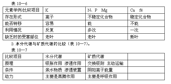 2.矿质元素的利用(表10—6)。