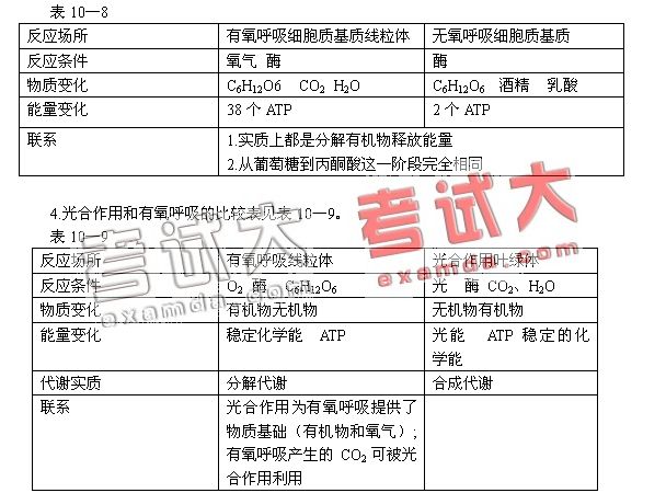 3.有氧呼吸与无氧呼吸的比较表(表10—8)。