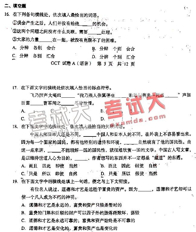 07年10月在职硕考GCT语言试题(A卷)(2)
