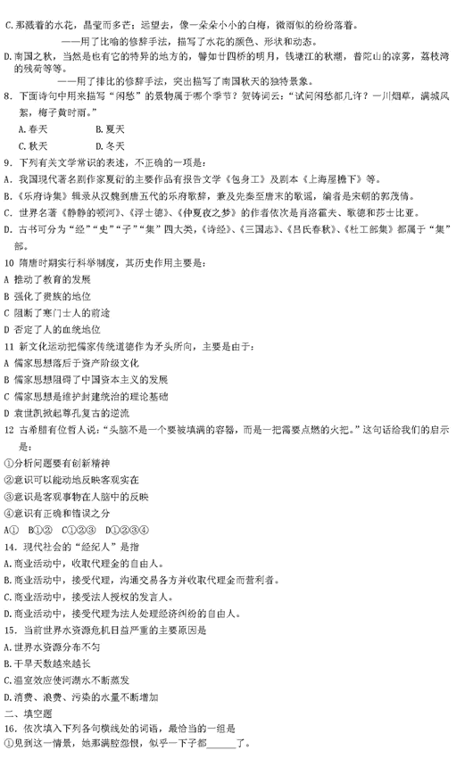 2006年GCT考前辅导语文模拟练习试题(2)