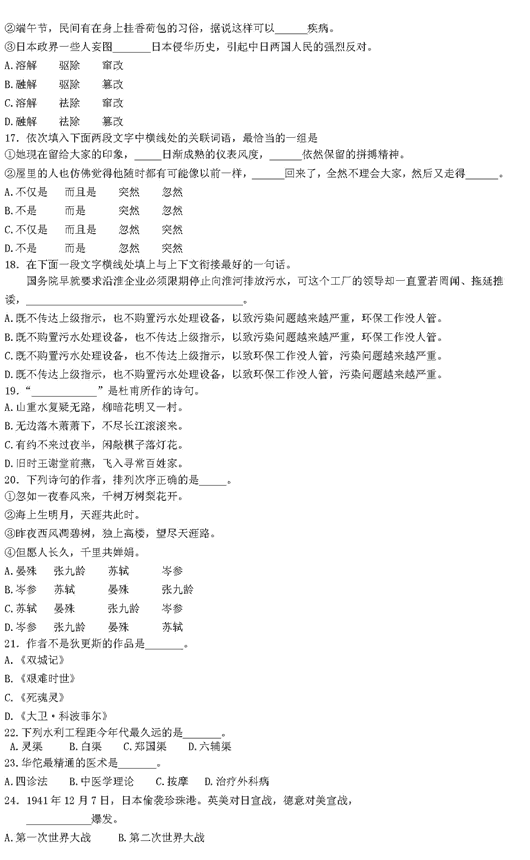 2006年GCT考前辅导语文模拟练习试题(3)