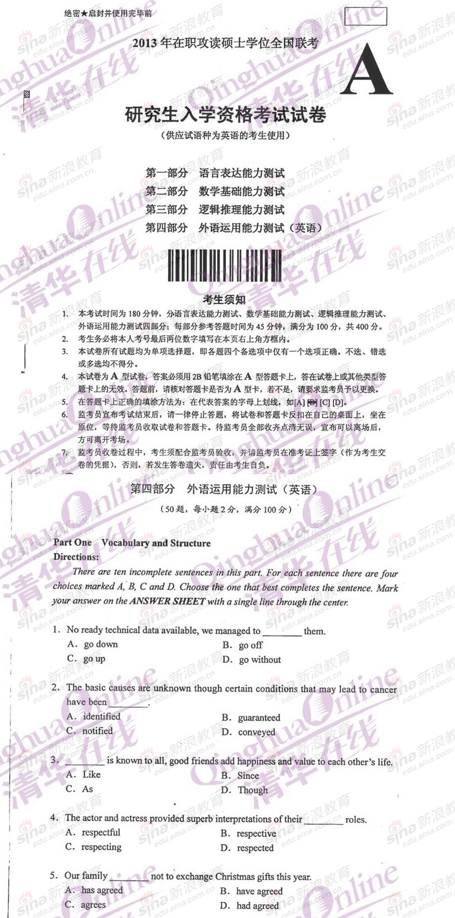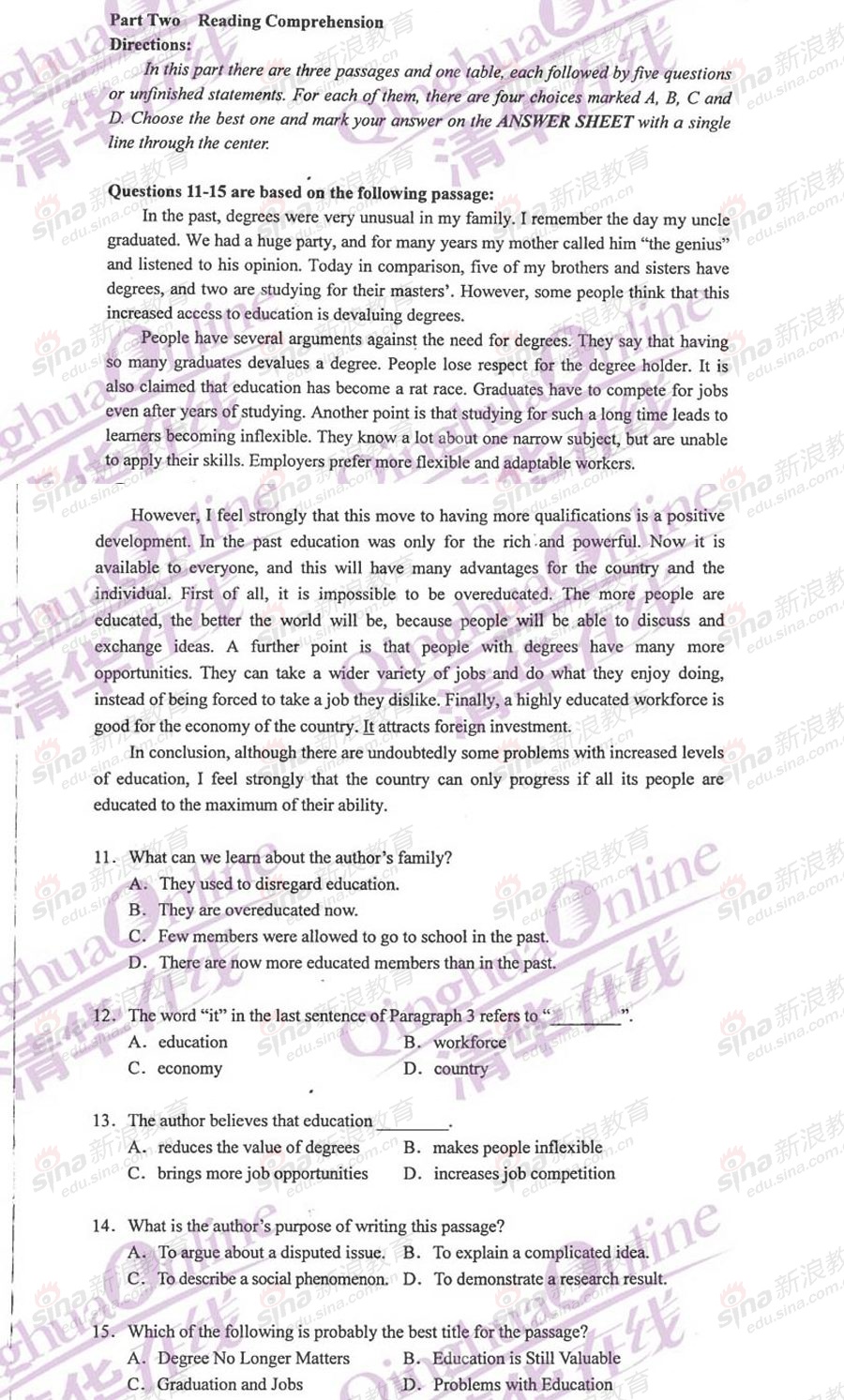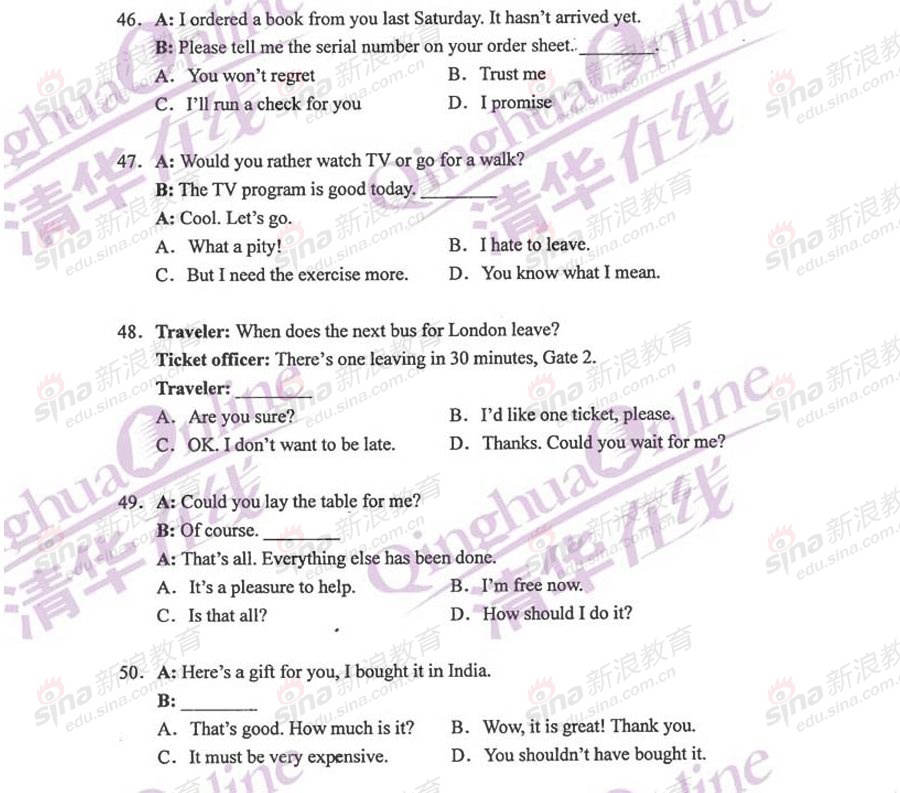 专业硕士新闻 新浪教育 2011-01-14 2011年GCT逻辑试题参考答案 1D 11C 21C 31C 41B 2D 12D 22B 32D 42D 3B 13C 23B 33B 43C 4A 14B 24C 34D 44D ...