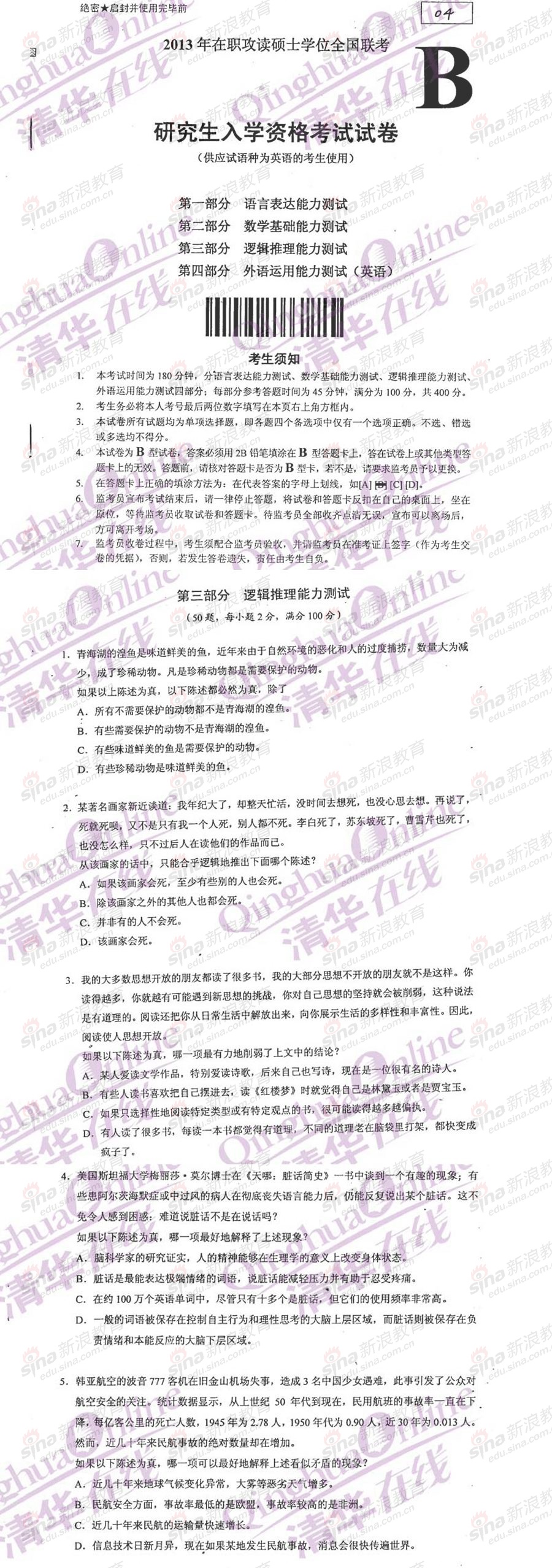 专业硕士新闻 新浪教育 2011-01-14 2011年GCT逻辑试题参考答案 1D 11C 21C 31C 41B 2D 12D 22B 32D 42D 3B 13C 23B 33B 43C 4A 14B 24C 34D 44D ...
