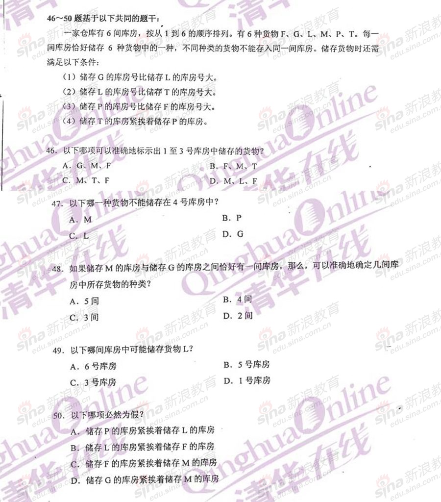 GCT工程硕士 本站小编 免费考研网 2014-02-15 2011年GCT逻辑试题参考答案 1D 11C 21C 31C 41B 2D 12D 22B 32D 42D 3B 13C 23B 33B 43C 4A 14B 24C 34D 44D ...