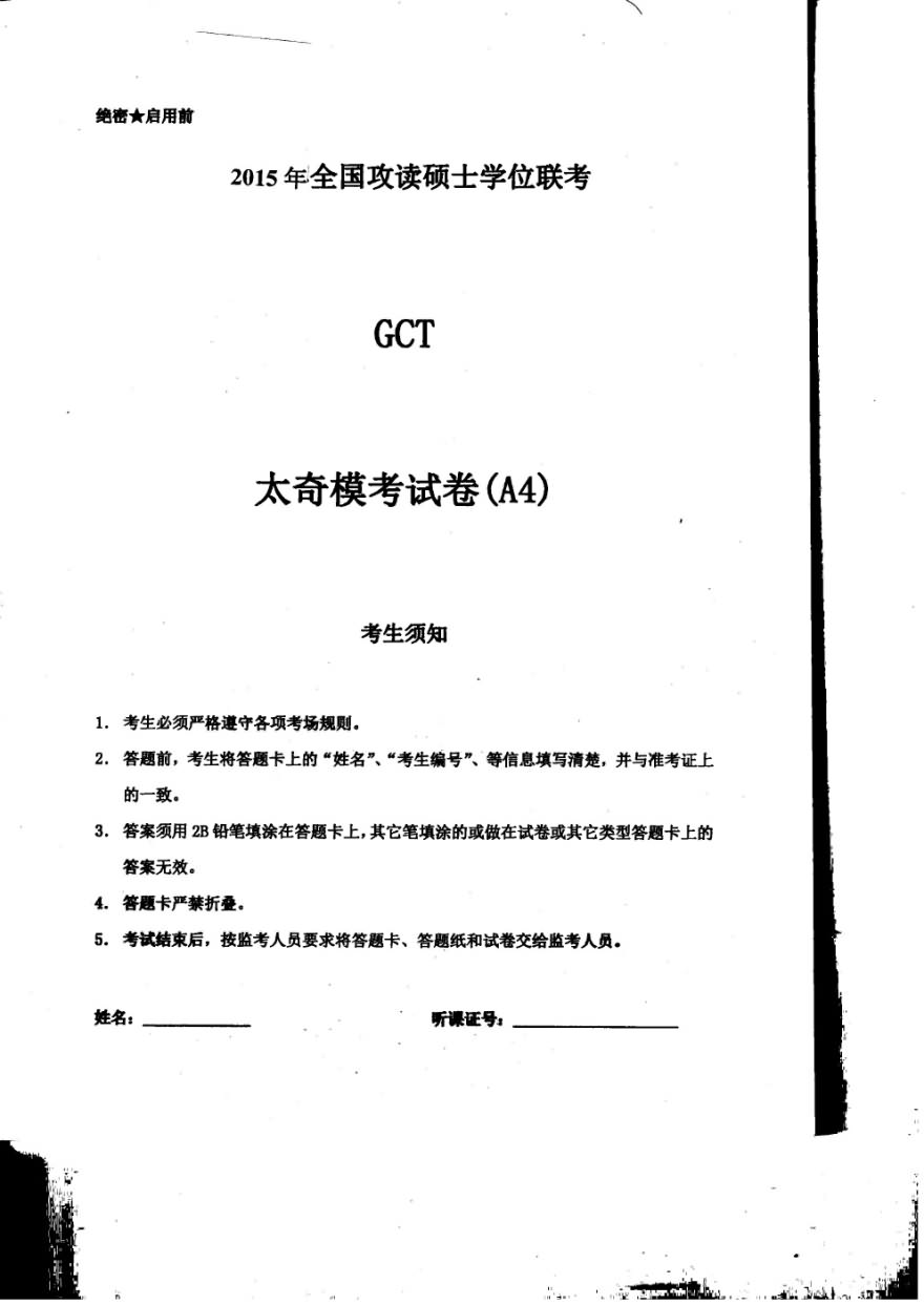 2015全国联考GCT太奇模拟考试试卷A4 四模带答案