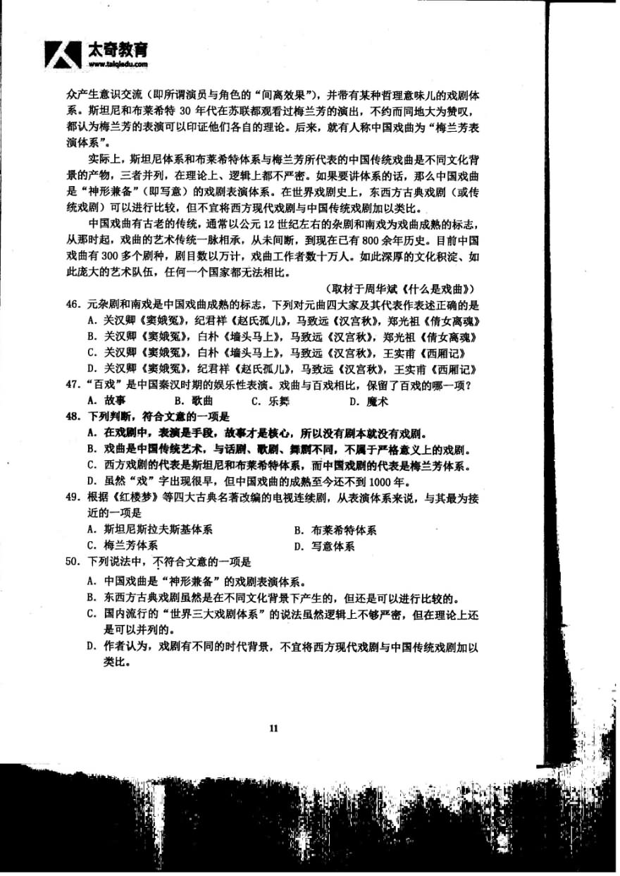 2015全国联考GCT太奇模拟考试试卷A4 四模带答案(12)