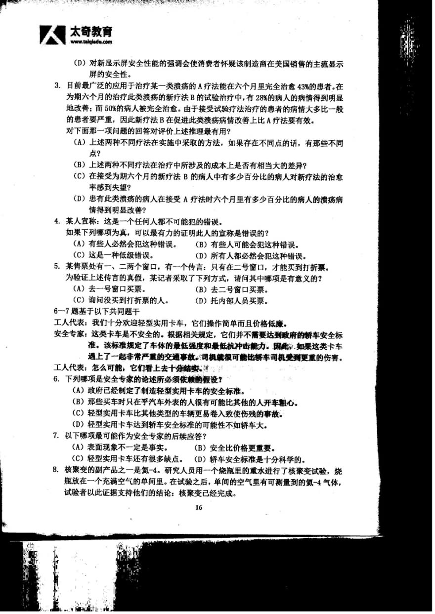 2015全国联考GCT太奇模拟考试试卷A4 四模带答案(17)