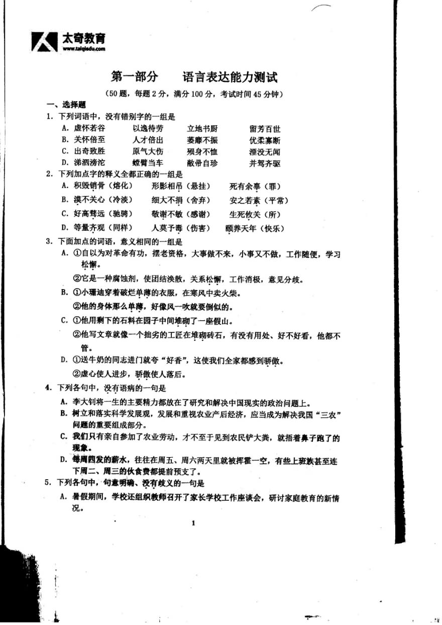 2015全国联考GCT太奇模拟考试试卷A4 四模带答案(2)