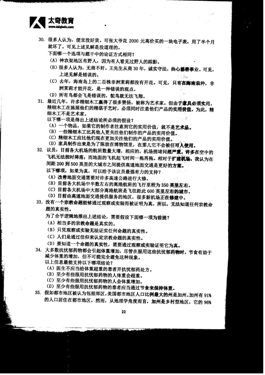 2015全国联考GCT太奇模拟考试试卷A4 四模带答案(22)