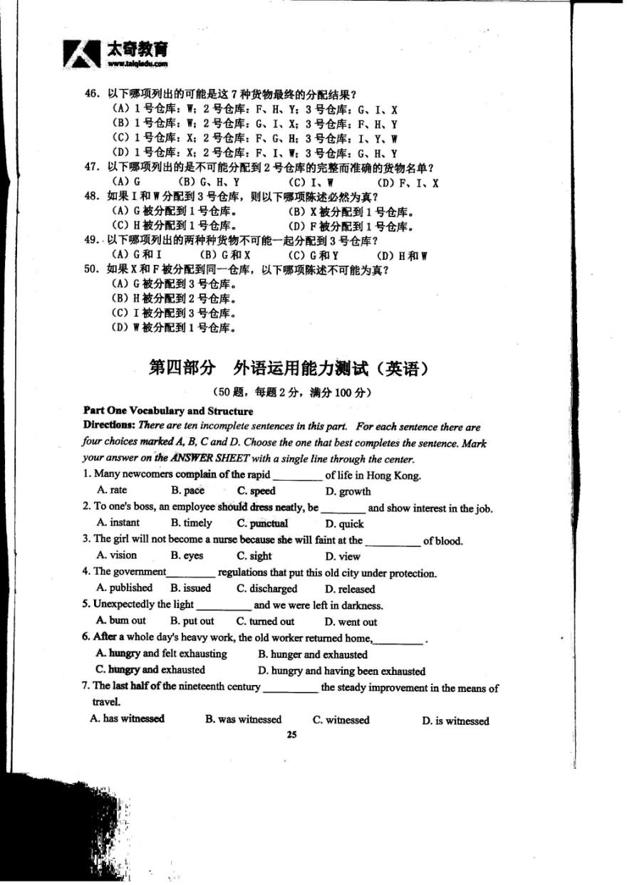 2015全国联考GCT太奇模拟考试试卷A4 四模带答案(26)