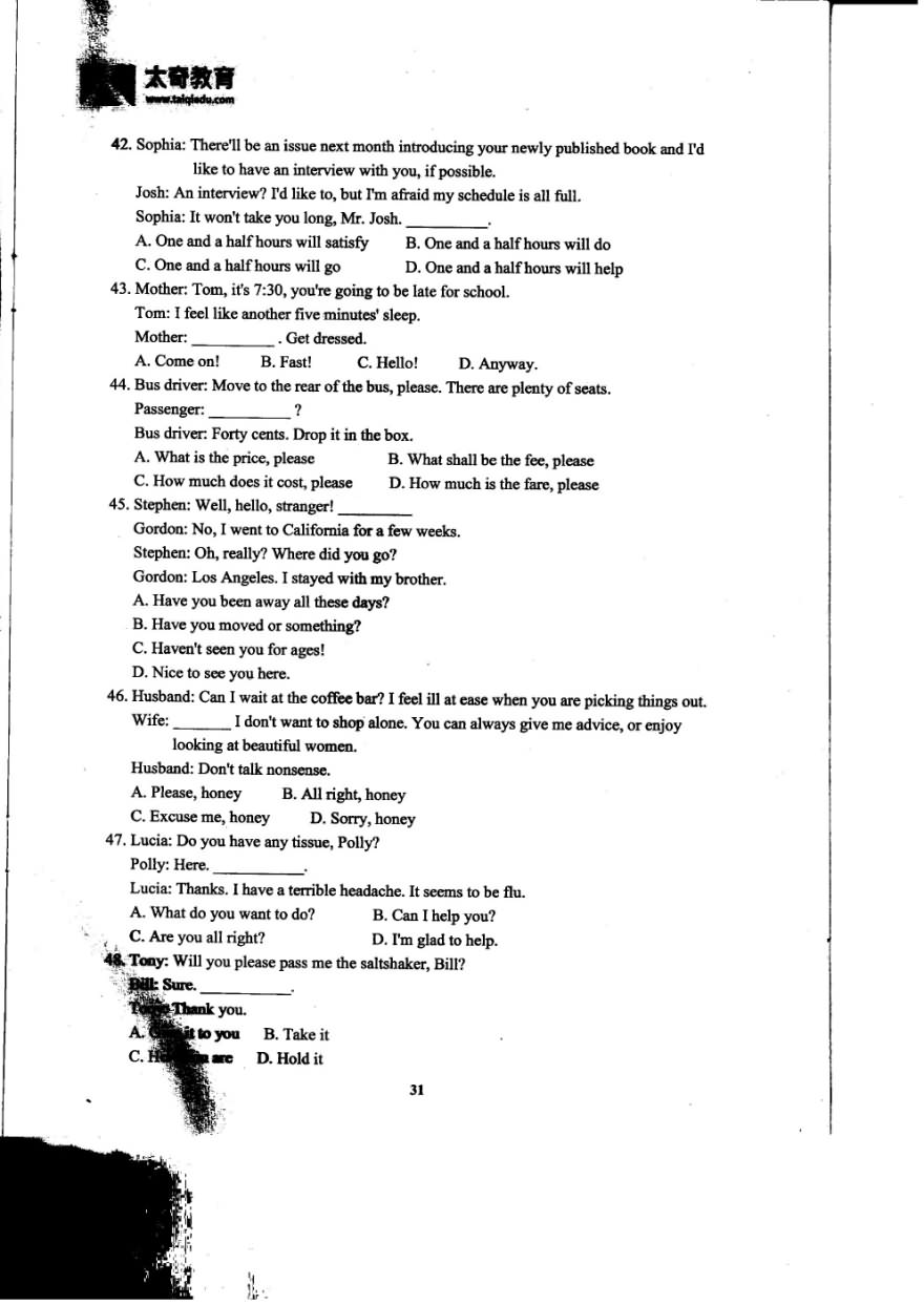 2015全国联考GCT太奇模拟考试试卷A4 四模带答案(33)