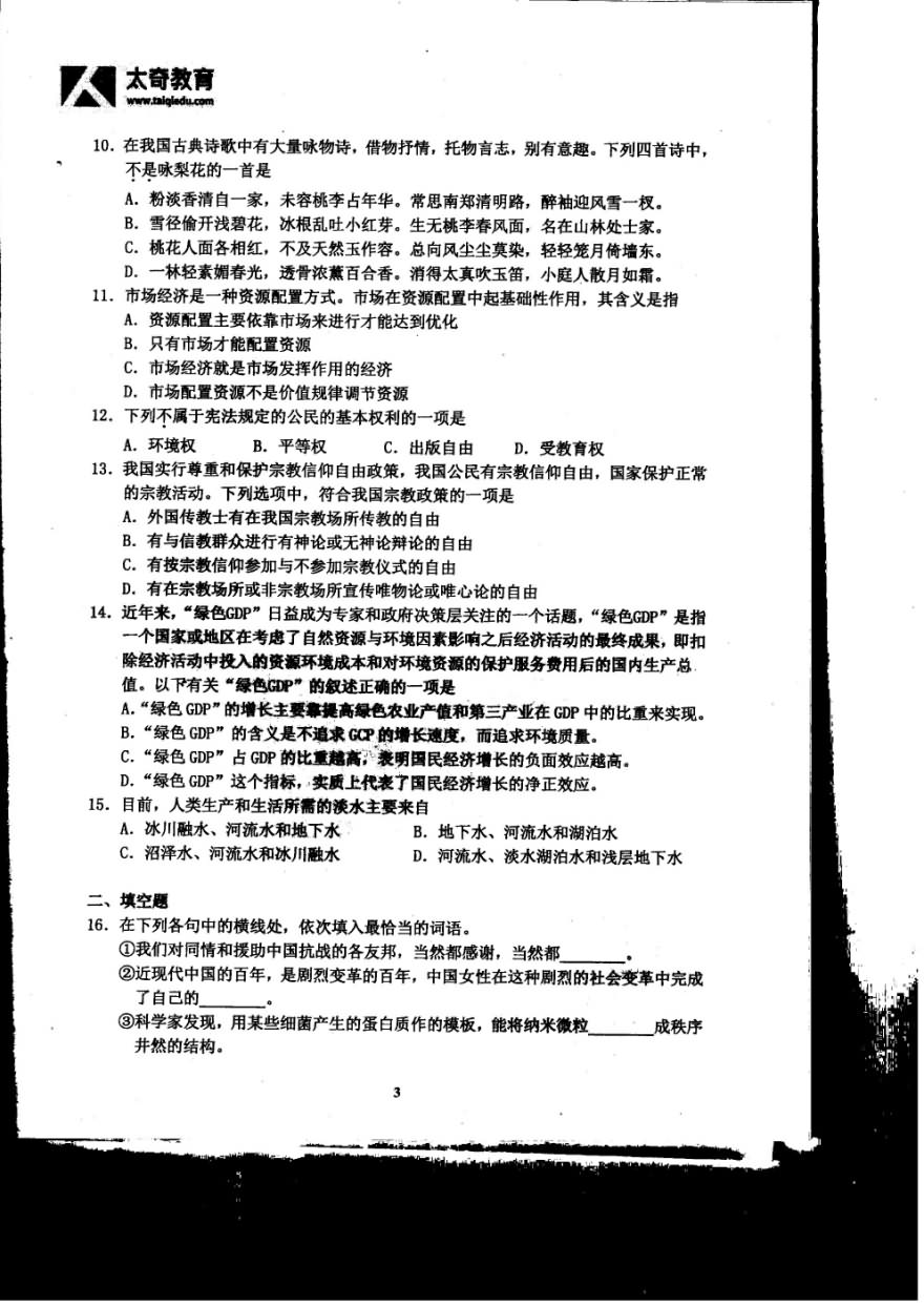 2015全国联考GCT太奇模拟考试试卷A4 四模带答案(4)