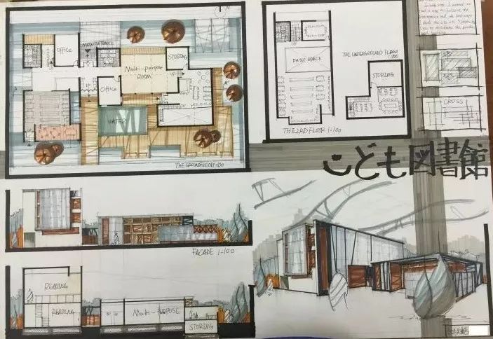 本人属于业余脑残,职业手残。以前从未参加过任何手绘练习班(小学参加过课外班,画 过两天水彩),也没有接受过任何马克笔的培训课程,自认也没什么绘画天赋,准备快题 考试的时间前后也不过两三周左右。所以各位想要参加日本高校修士入学考试的小伙伴们,一定要对自己有信心!信心很重要! (其实对任何学校都一样)