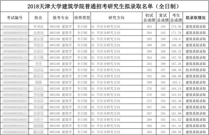 (插个题外话,了解天大建院的可能会知道,考天大建筑的话初试成绩基本等于最后排名,复试的影响非常小。)