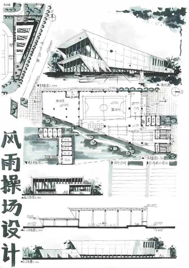 不难看出,不仅看重表现,更加注重方案本身。所以平时的抄绘是必不可少的。为什么在春季四方手绘手绘要举办抄绘案例,就是因为全方位提高同学们的手绘能力和快题方案能力。重庆大学快题注重构造和技术的部分,所以时常背几个构造大样图也是很有必要的。快题无捷径,勤加练习是保障,多思考解题方案是提分的门道。