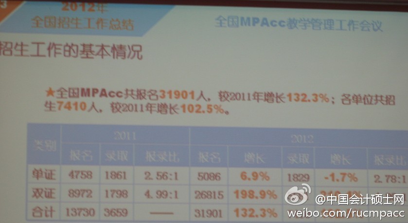 有关2012年在职MPAcc报考情况,中国会计硕士网提示,可点击2012年在职MPAcc报考形势、招生限额、政策解读查阅。