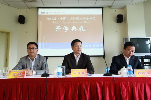 4月12日下午,上海国家会计学院MPAcc十期班开学典礼顺利举行。上海国家会计学院院长助理卢文彬教授、研究生部副主任郑德渊副教授、教师代表吉瑞博士出席了本次典礼。