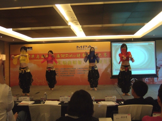 当晚的歌舞表演更加夺人眼球,充分表现了MPAcc学员的风貌和艺术才华,09级给大家带来活力十足的健美操表演,就像把阳光带进了会场。而08级的四位美女以惊艳的造型和优美的身姿成为全场瞩目的焦点。