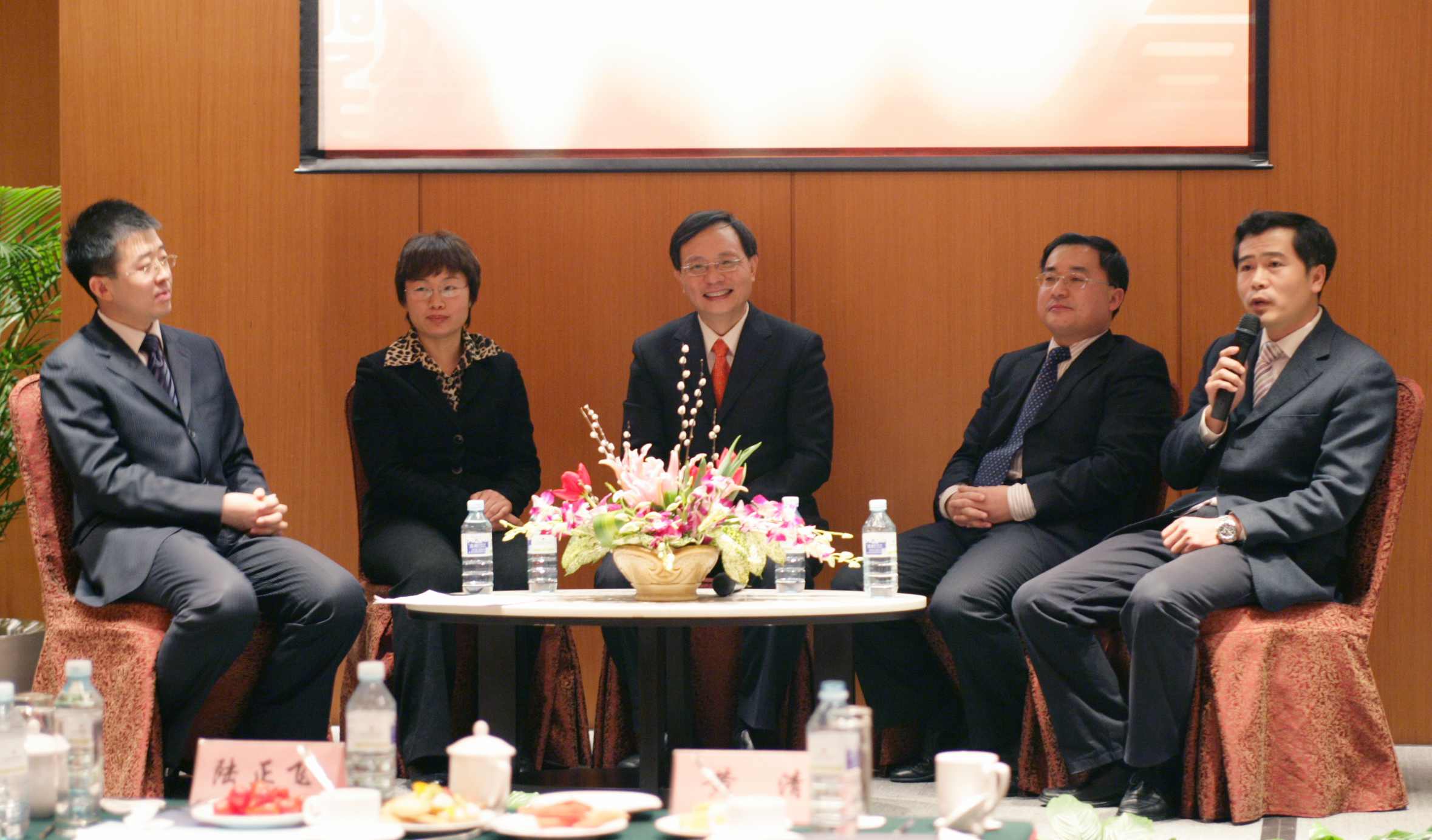 论坛的第二部分是异常精彩的圆桌讨论。参加讨论的有黄清先生,05级MPAcc校友、鲁商集团财务中心经理朱华建先生,07级MPAcc校友、物美集团财务总监苏红霞女士,09级MPAcc同学、中国交通建设集团资金部总经理朱宏标先生。在09级MPAcc梁亮同学的精彩主持下,与会嘉宾与学生代表就会计师在企业中的价值体现、金融危机中的会计师担当、财务战略在企业战略中的体现等展开了讨论,精彩之处频频呈现,会场上不时传来阵阵掌声。黄清先生对神华的企业责任的阐述、朱华建学长对鲁商集团的财务战略调整、苏红霞学长对物美扩张发展中财务作用的发挥等成为一个个亮点。特别是朱宏标同学创造性地把常人理解的繁琐财务工作中比喻成美学,艺术之美渗透到他的管理工作中,更是成为圆桌讨论的高潮。