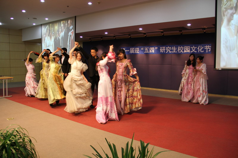 晚上的活动包括英语协会排练的英文话剧《傲慢与偏见》,以及文艺协会发起的“北国会好声音”校园歌手大赛。经过近半年的认真排练,演员们在台上的表演忘我、细腻、真诚、生动,感染着现场每位观众,把大家带入剧情中,随着剧中人物的情感或喜或悲。紧随其后的校园歌手大赛共有20组同学参加,从国语到英语,从流行歌曲到民族歌曲,从通俗音乐到传统京剧,从独唱、对唱到小合唱,颇具专业水准。经过激烈的角逐,来自2013级在职研究生的马轩摘得了桂冠。
