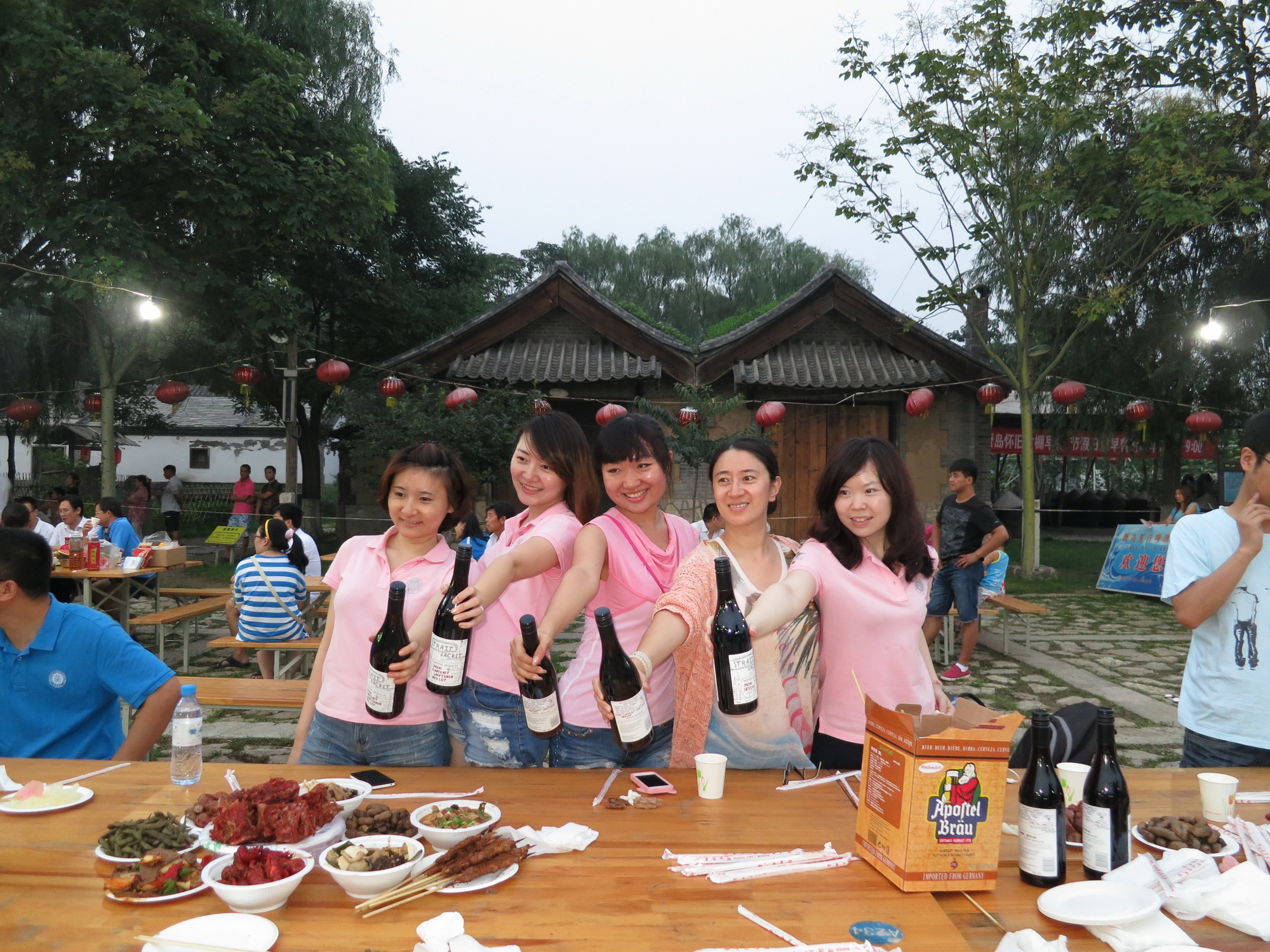 不知觉夕阳渐下,恍然间饥肠辘辘,团而聚坐,晚风略面,开怀而畅饮,不醉乎不归。宴酒之初,左右秩秩,饮酒孔偕,举酬逸逸。来而往亦,温温其恭,龠舞笙鼓,有壬有林。曰既醉止,威仪幡幡,是曰既醉,不知其邮。述志遣怀,以安胸臆,醉而不出,乐而不返。得至兴处,拍案欲起,余想怡然,怎奈何如?叹曰:今宵有酒兮今宵醉,何管明日乎?