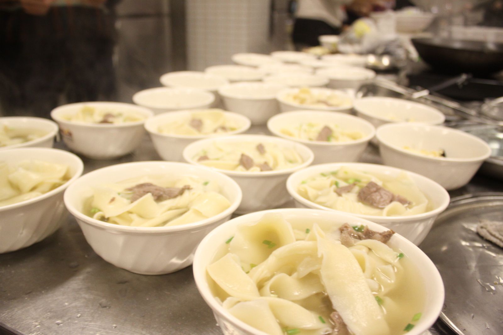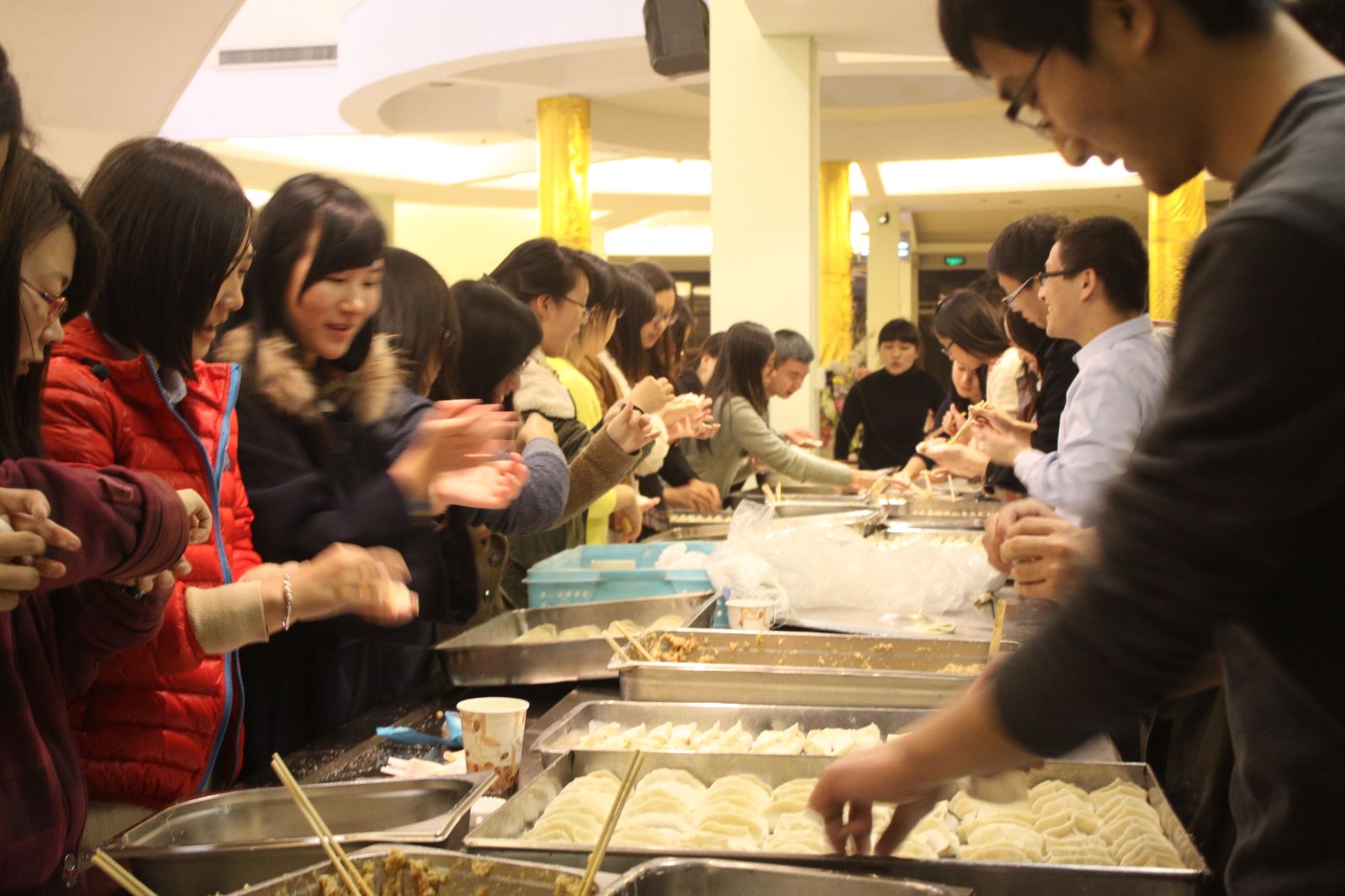 第二部分是包饺子。活动本着全民参与、娱乐为主的原则,特设包饺子活动这一环节,包饺子与厨艺展示同时进行,12组厨艺展示之外的同学与研究生部