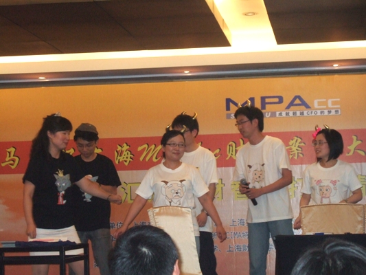大赛后是交大2008和2009级的同学自己准备的各种游戏和娱乐节目。现场高潮迭起,精彩不断。首先由09级带来的“喜羊羊与灰太狼”乘着时下流行之风,以交大MPAcc的学习为背景,构思独特,表演诙谐,台下笑声不断。因贴近学员生活而在观众中引起共鸣,给人留下深刻印象。