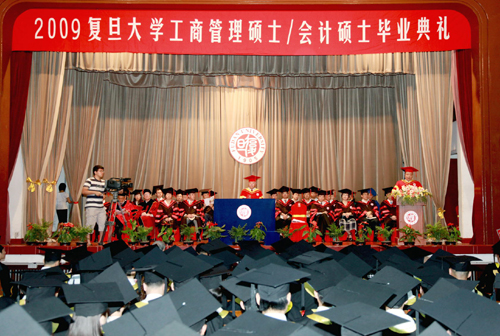 经过两年的刻苦学习,迎来了收获的季节。这一刻,让梦想起飞。2009年7月11日,复旦大学工商管理硕士/会计硕士毕业典礼在复旦大学相辉堂隆重举行。典礼当日,复旦大学MBA项目、复旦大学IMBA项目、复旦大学EMBA项目、复旦大学MPAcc项目、复旦大学-BI(挪威)MBA项目以及复旦大学-华盛顿大学EMBA项目的2009届毕业生身穿硕士服,齐聚相辉堂,共同迎接开启人生新的里程。