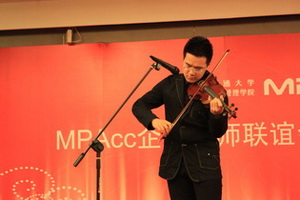 仪式结束后,同学们精心筹备的“2011年MPAcc企业导师联谊会暨新年联欢会”节目精彩上演,企业导师与同学们共同联欢。来自MPAcc项目在校生四个班的同学们带来了异彩纷呈的节目表演:张媛媛、苏凯玲等三男三女搭档的组合舞曲,巧妙的编排、帅气的表演引起了一阵轰动;丁程亮的小提琴独奏时而舒缓,时而高昂,演奏功底扎实;在职班刘海东、赵琳夫妇的清新的吉他民谣弹唱,带领我们回到曾经那个纯真年代;黄淞、姚雪婷等编排的歌曲串烧创意颇多、中英夹杂,动感的旋律感染了全场;一台短小而精彩的舞台剧浓缩了顿忠清、杨伟光等主创人员的心血,各种极具张力的表演充分展现了全日制班同学的才华,笑料频频,掌声不断,把全场气氛推向上了最高潮。