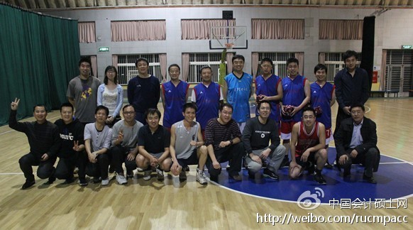 老师们配合熟练、打法稳健、进攻失误率也低。制导导弹般精准的3分球是老师队的秘密武器,对学生联队造成了很大的杀伤;强有力的防守和攻防端篮板球为老师队建立了稳固的领先优势。而特别让学生联队佩服的是:老师们虽然年长许多,体力却绝不逊色与同学们,包括陈磊、岳衡、罗炜、江明华、刘力等在内的多位老师打满全场未曾休息。 MPAcc学生联队方面:虽然各年级未曾一起合练,但同学们的篮球意识和个人技术很大程度上弥补了配合方面的缺陷。期间队员们展现了优秀的组织进攻能力;其间快攻、中投效率也极高。整体上MPAcc联队依靠篮板和防守获得了很多快攻的机会,多次迫近比分。但受制于教师队严密的防守,MPAcc联队的进攻失误率也较高,最终未能实现反超。 球赛比分定格在57:69,教师队获胜,师生互相击掌喝彩,2010级创业者魏书国赞助了精美的礼品。 合影留念时,师生共同喊出了“友谊第一,比赛第二,考试第三”的响亮口号,比赛在师生的欢声笑语中成功结束。