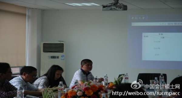 中南大学商学院张颖副院长向调研组汇报MPAcc情况