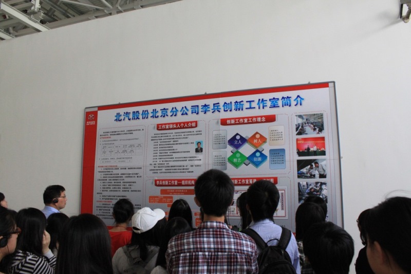MPAcc师生首先参观了北汽股份北京分公司的汽车制造生产线,并重点考察了“李兵创新工作室”和生产制造系统(MES)控制室,高度机械化、智能化的现代生产线让参加参观考察的师生赞叹不已。