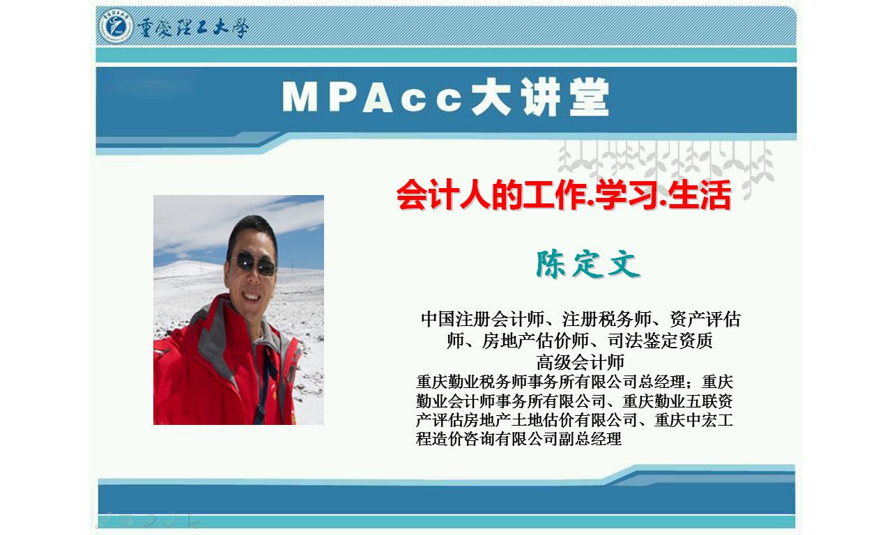 重庆理工大学MPAcc,专注培养走向前台的会计师。欢迎全校广大研究生、本科生前来聆听。