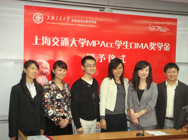 2009年11月1日中午,上海交通大学MPAcc学生英国特许管理会计师工会(CIMA)奖学金授予仪式在上海交通大学安泰经济与管理学院北楼103室隆重举行。上海交通大学MPAcc项目副主任张倩老师致欢迎辞,英国管理会计师协会CIMA中国区首席代表李颖女士做了精彩演讲。上海交大MPAcc项目依托学校和管理学科的综合优势,以培养战略型、国际化财务总监为己任,不断创新会计专业硕士培养体系,全力培养一批能将敏锐的洞察力、执着的学习力、缜密的思考力、非凡的领导力和精准的执行力的青年才俊,力图通过为社会输送更多的高端财会专门人才来更好地回报整个社会。上海交大MPAcc项目与英国管理会计师协会CIMA合作,报考CIMA免考九门课程,并设立CIMA奖学金以鼓励MPAcc学员加入CIMA学习报考,今年刚好是CIMA创建90周年,和交大MPACC合作主要是希望培养有战略性思维的财界领袖,帮助有志之仕成就事业和梦想;同时CIMA更有意与上海市政府一起把上海打造成世界级的金融人才高地。此次奖学金的获奖人员共三人,均为08级的学员,他们分别是李栋、胡艳芳、顾恬,李栋同学荣获一等奖,胡艳芳、顾恬获二等奖。获得奖学金的同学表示很幸运走进交大来提升自己,并有幸继续CIMA的学习,希望末来可以通过努力在职业生涯中画出更美丽的蓝图;准备CIMA考试的过程很辛苦,但是现在发现自己并不孤独,很高兴还有学校方和CIMA的支持和帮助,会一直走下去;相信大家都可以通过努力而获得成功。 崔醒 供稿