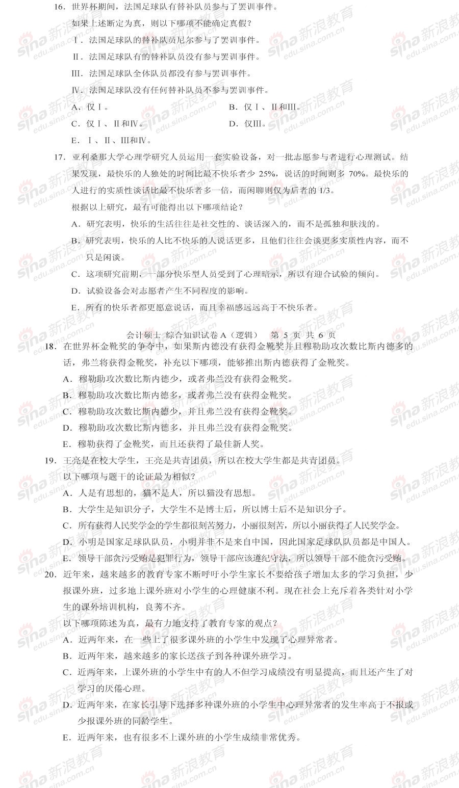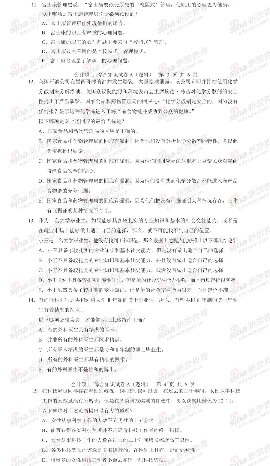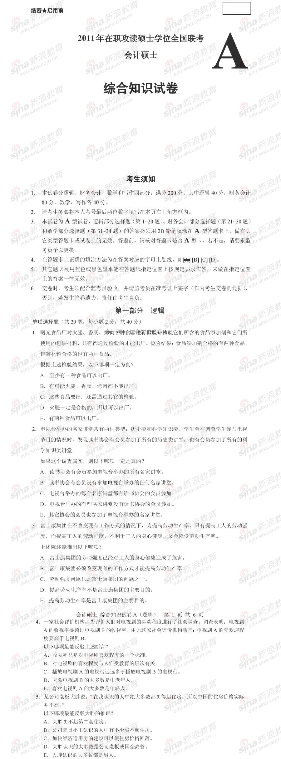 会计硕士(MPAcc)专业学位联考综合知识考试是全国统一的选拔性考 ...