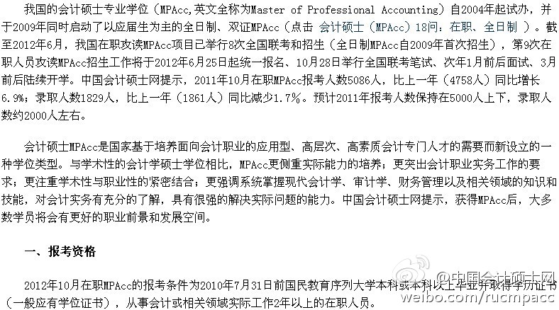入门必读:2012年 在职、单证 MPAcc 报考指南